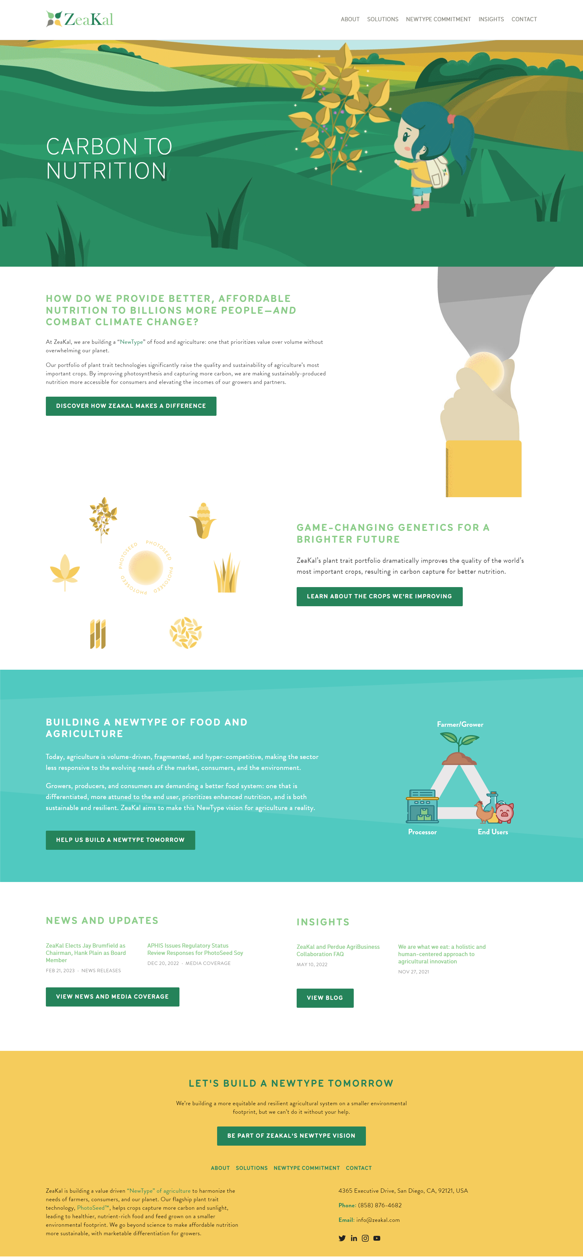 Custom illustrations, copywriting and web design for agriculture (agtech) start-up ZeaKal, which develops plant trait technologies that enhance photosynthesis.