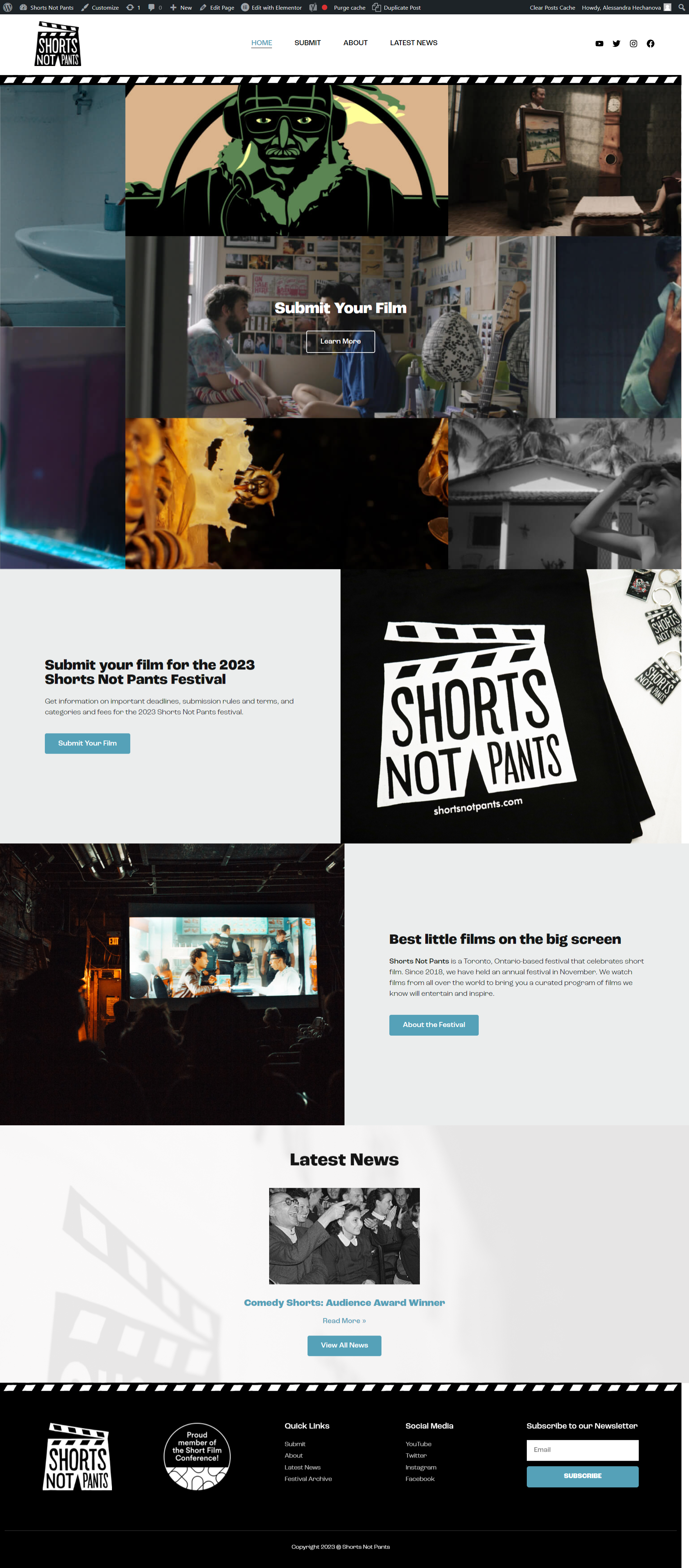Website re-design for Shorts Not Pants, a Toronto-based short film festival held each November.