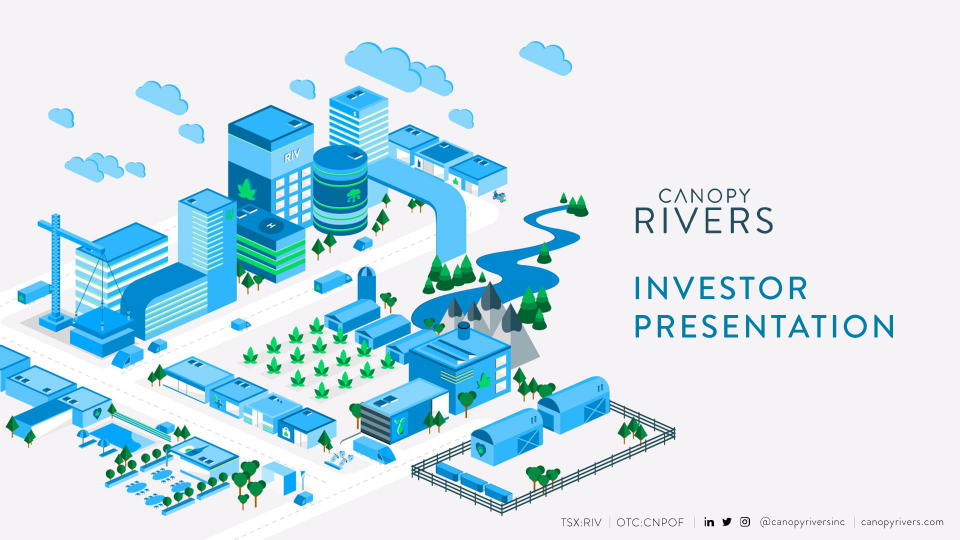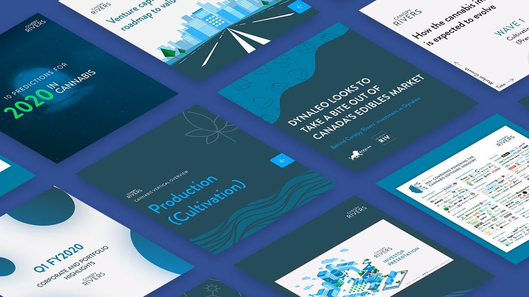 Slide deck design and social media graphics for Canopy Rivers' investor presentation