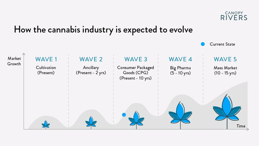 Graphic for web + social describing how Canopy Rivers expects the cannabis industry to evolve.